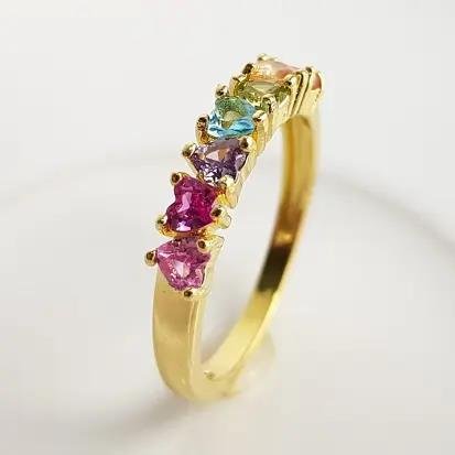 ANEL MEIA ALIANCA CORACOES COLORIDOS | BANHO DE OURO 18K 3MM