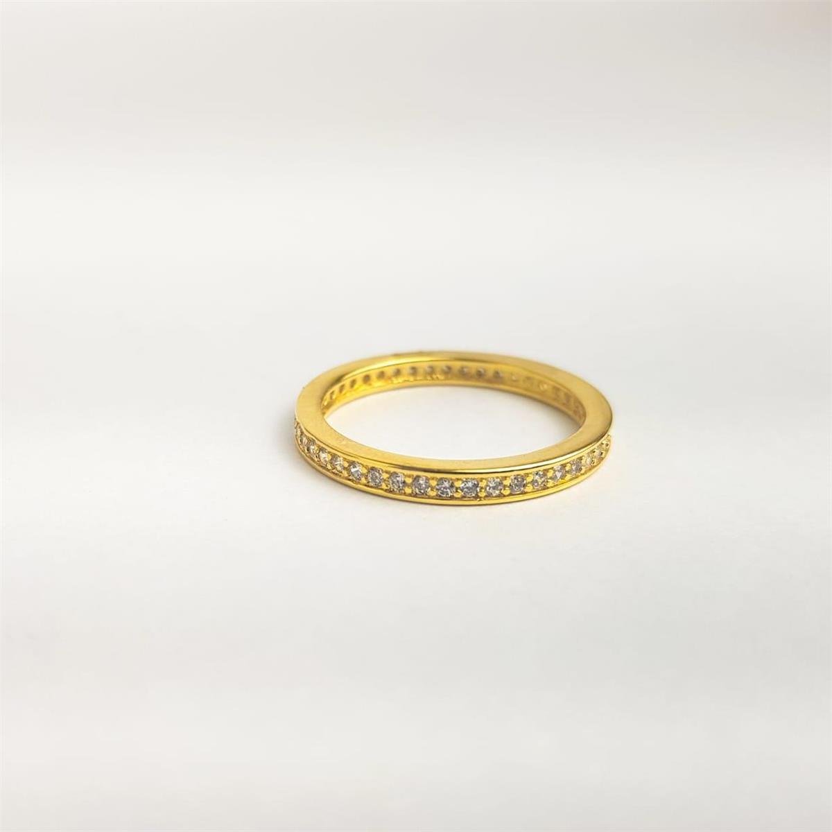 ANEL MEIA ALIANÇA FILETE LISO/ ZIRCÔNIAS AO MEIO CRISTAIS | BANHADO EM OURO 18K