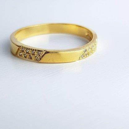 ANEL MEIA ALIANCA LISA COM 2 DETALHES ZIRC | BANHADO EM OURO 18K