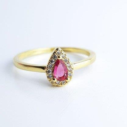 2. ANEL PEDRA GOTA VERMELHA CORNALINA 5MM CRAV| BANHADO EM OURO 18K