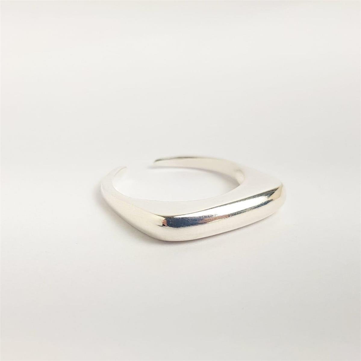 ANEL REGULÁVEL ARO LISO VERSO ACHATADO FRENTE RETA 4MM | BANHO DE PRATA