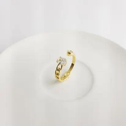 ANEL REGULAVEL METADE ELOS/LISO 2 ZIRC PONTA | BANHADO EM OURO 18K
