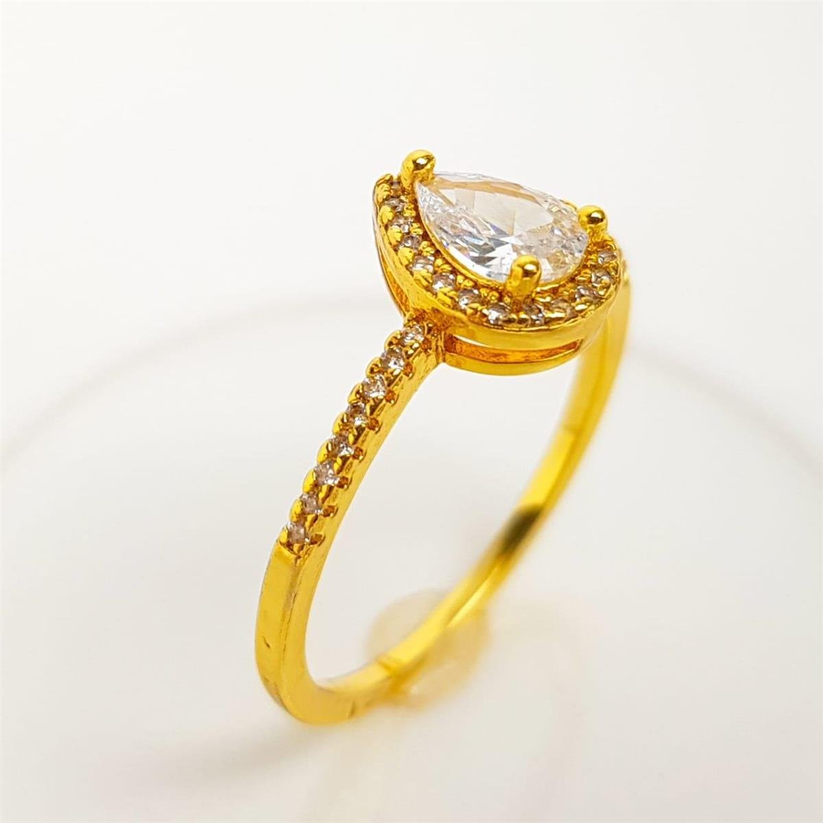 2. ANEL SOLITÁRIO ARO CRAVEJADO GOTA CRISTAL| BANHADO EM OURO 18K
