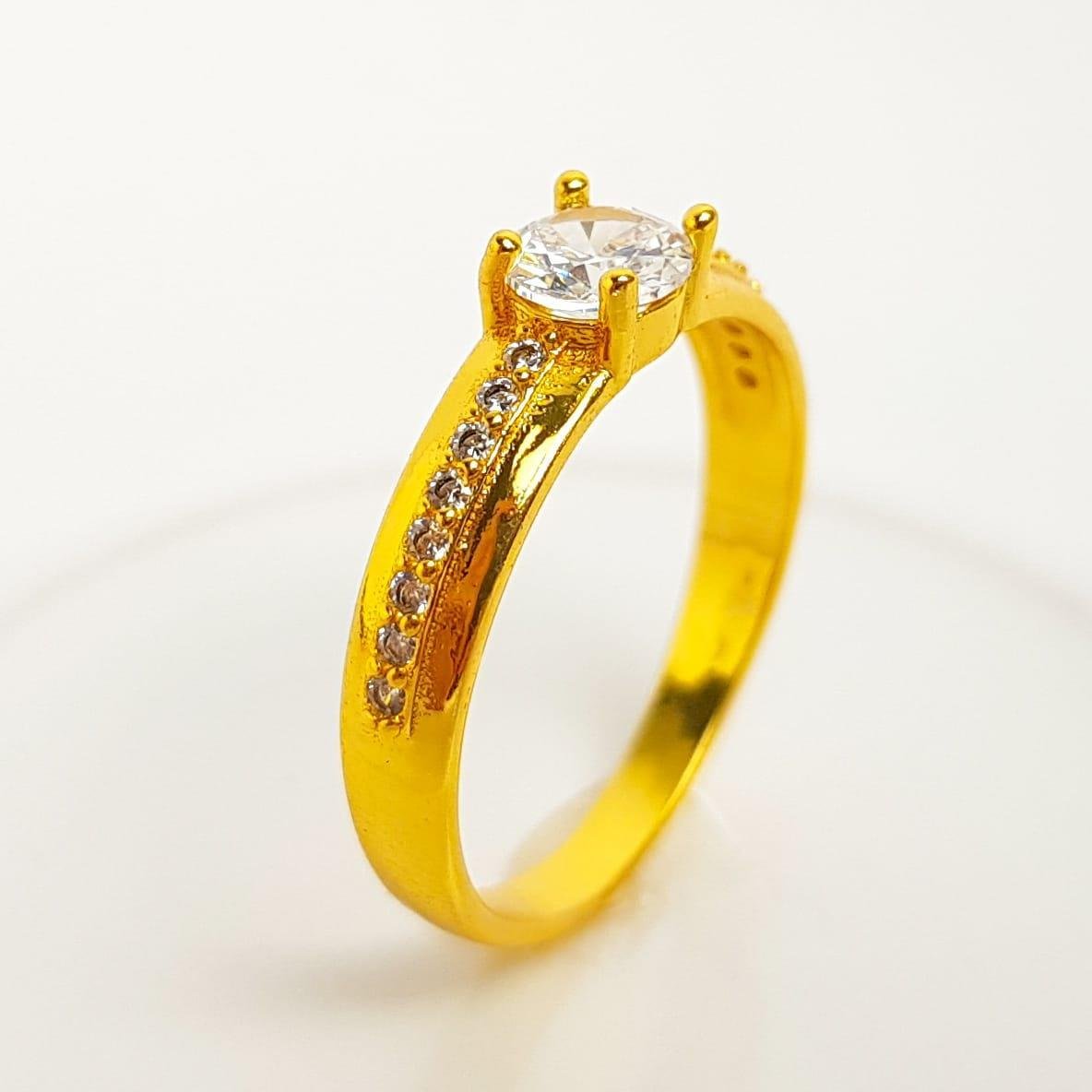 2. ANEL SOLITÁRIO ARO LISO COM FILETE CRAVEJADO COM ZIRCÔNIA CRISTAL | BANHADO EM OURO 18K