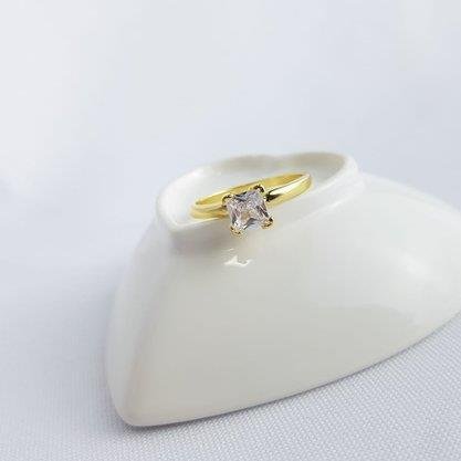 ANEL SOLITARIO ARO LISO PEDRA QUADRADA | BANHADO EM OURO 18K