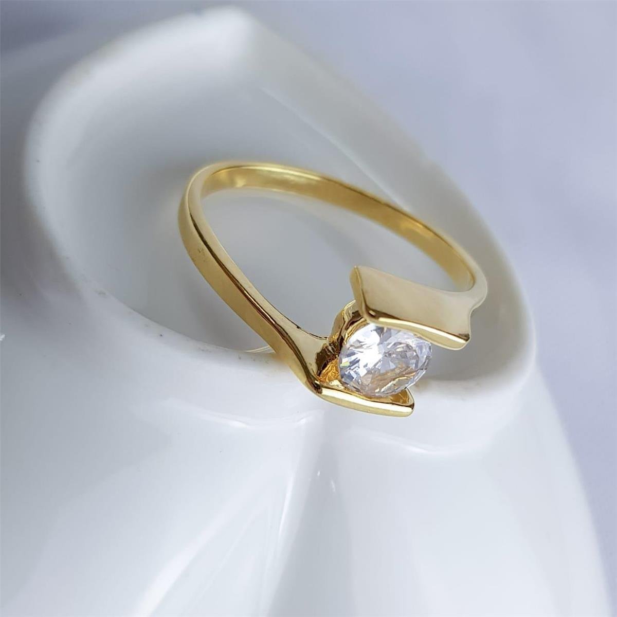 ANEL SOLITARIO ARO SEMI ABERTO CHAPA QUADRADA | BANHADO EM OURO 18K