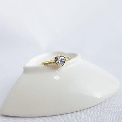ANEL SOLITARIO CORACAO ZIRC E CRAV NA LATERAL | BANHADO EM OURO 18K