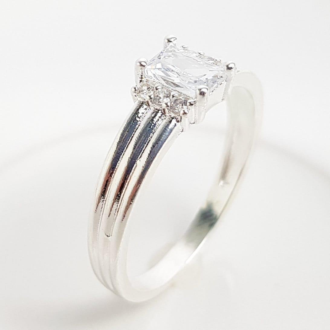 2. ANEL SOLITÁRIO FILETES LISOS ZIRCÔNIA 4 GARRINHAS REDOR CRAVEJADO| BANHO DE PRATA
