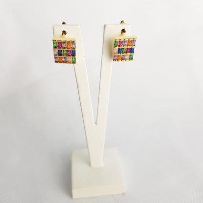 ARGOLA QUADRADA COM MINI BAGUETES COLOR|BANHADO EM OURO 18K