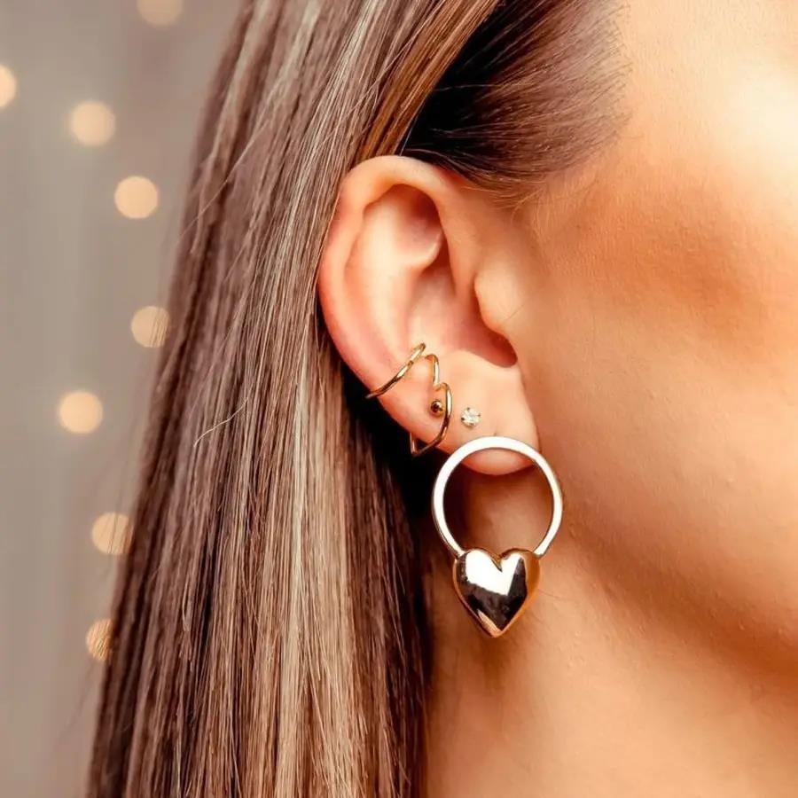 2. BRINCO CIRCULO CORACAO LISO|BANHADO EM OURO 18K