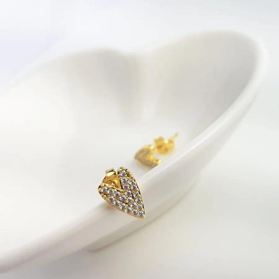 2. BRINCO CORACAO ALONGADO CRAVEJADO|BANHADO EM OURO 18K