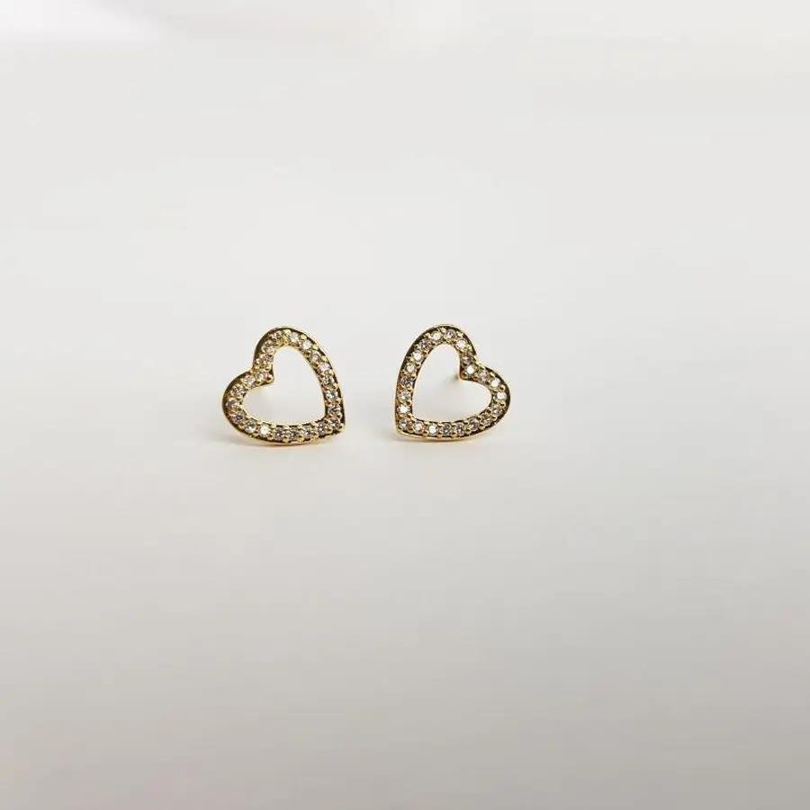 BRINCO CORACAO VAZADO E CRAVEJADO| 1CM|BANHADO EM OURO 18K