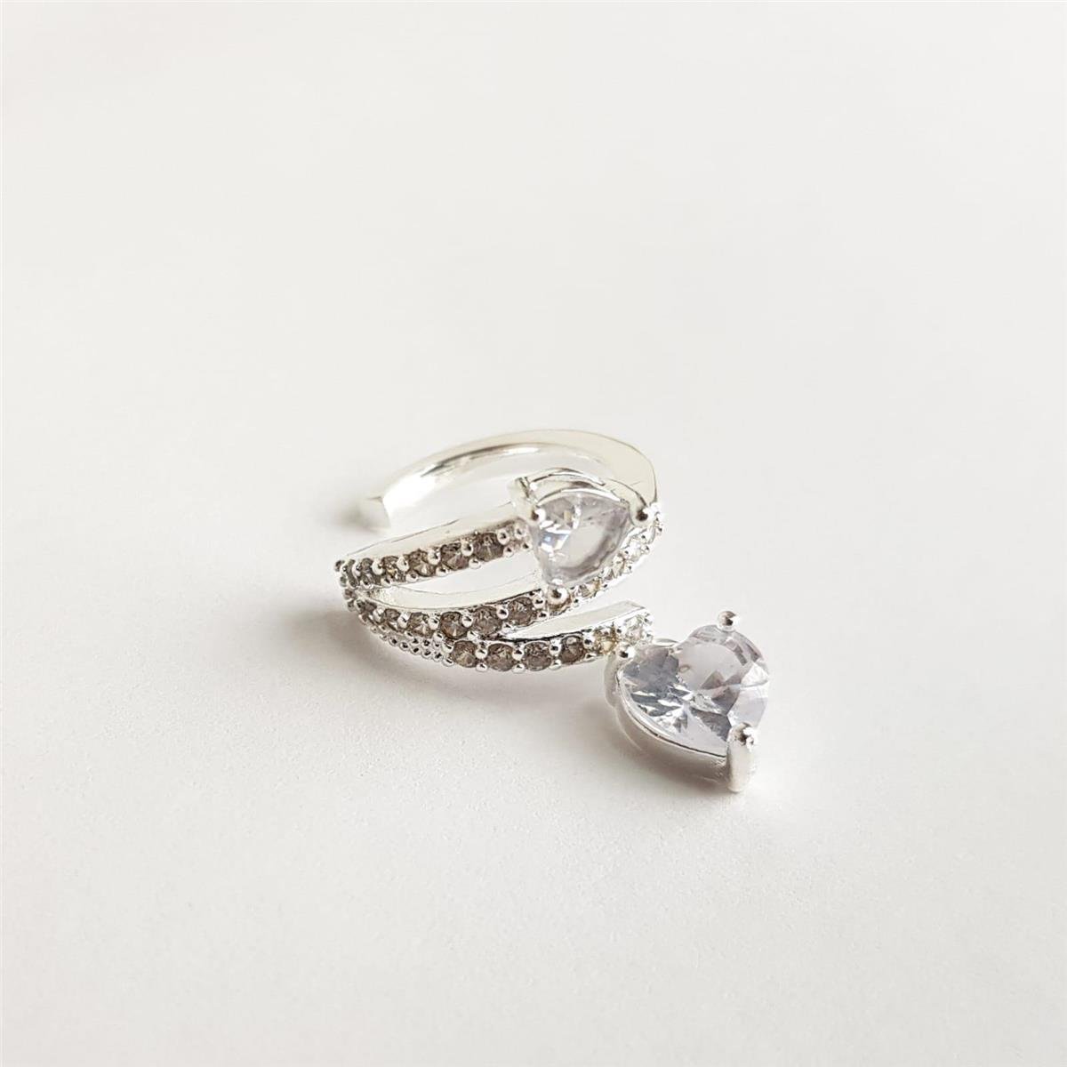 PIERCING ARO LISO FRENTE 3 AROS CRAVEJADO CENTRO CORAÇÃO CRISTAL PENDENTE EM CRISTAL CORAÇÃO |BANHO DE PRATA