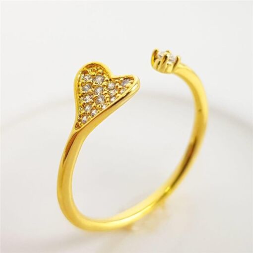 ANEL REGULÁVEL CORAÇÃO CRAVEJADO PONTO LUZ CRISTAL| BANHADO EM O